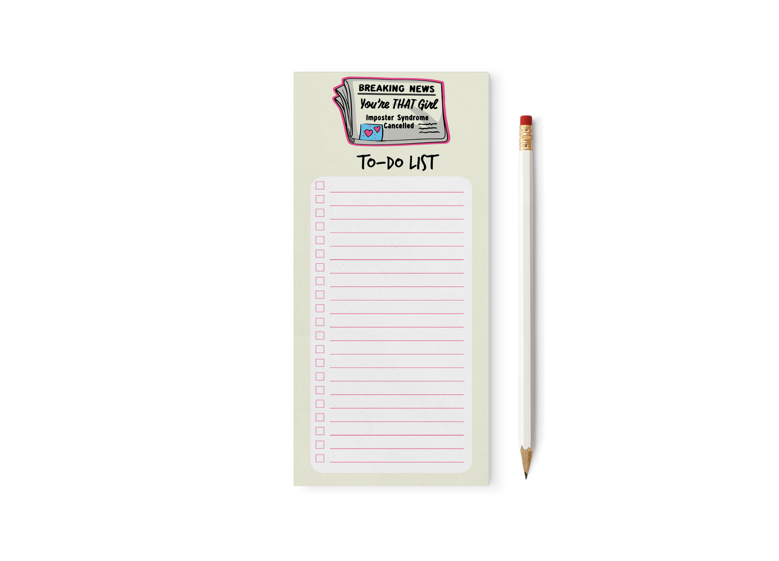 The Breaking News Notepad is designed for those quick daily check-ins and small wins that keep your routine flowing. Its slim, easy-to-reach format fits neatly on any desk or counter, perfect for jotting down reminders, tasks, or short notes throughout the day. Each sheet features a bold “Breaking News: You Are That Girl” header — a subtle reminder that you can handle whatever makes the list. The sturdy cardboard backing offers structure and durability whether it’s used flat on your workspace or upright with a magnet.