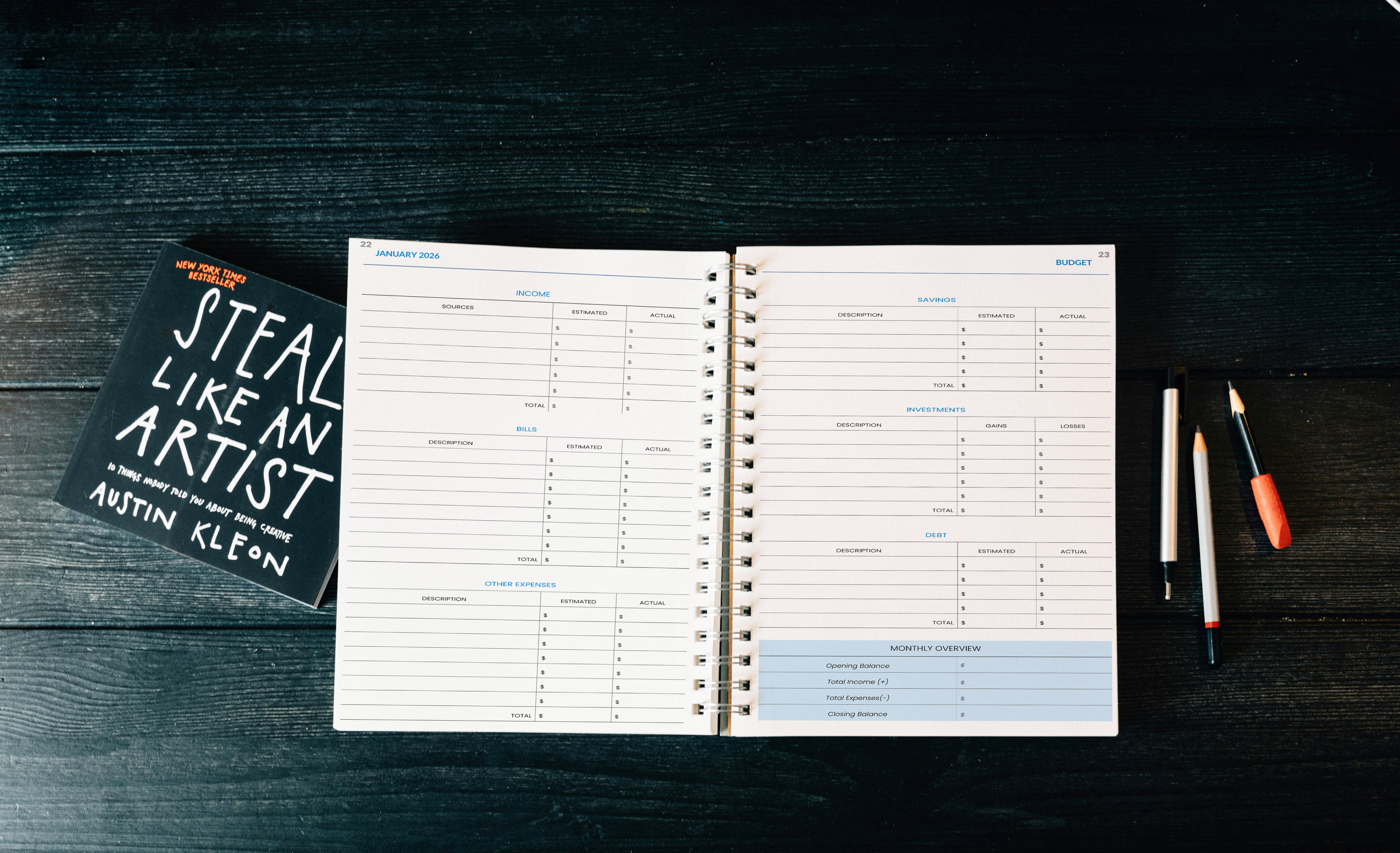 This dated 12-month planner includes advanced goal-setting tools, financial trackers, project planning layouts, and reflection pages to help you stay accountable and organised throughout 2026.