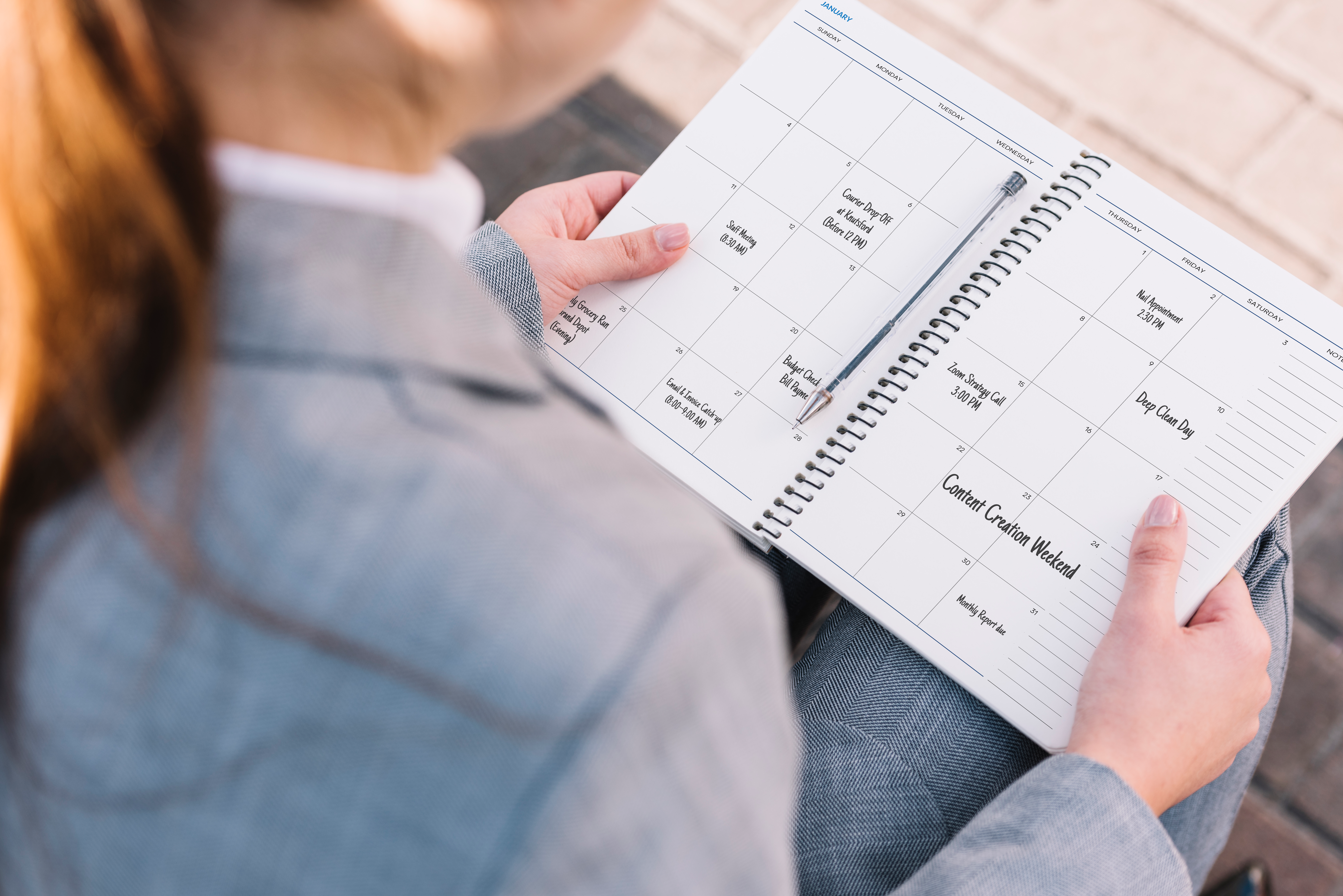 • Monthly Overview (two-page spread) for key events, appointments, and general notes