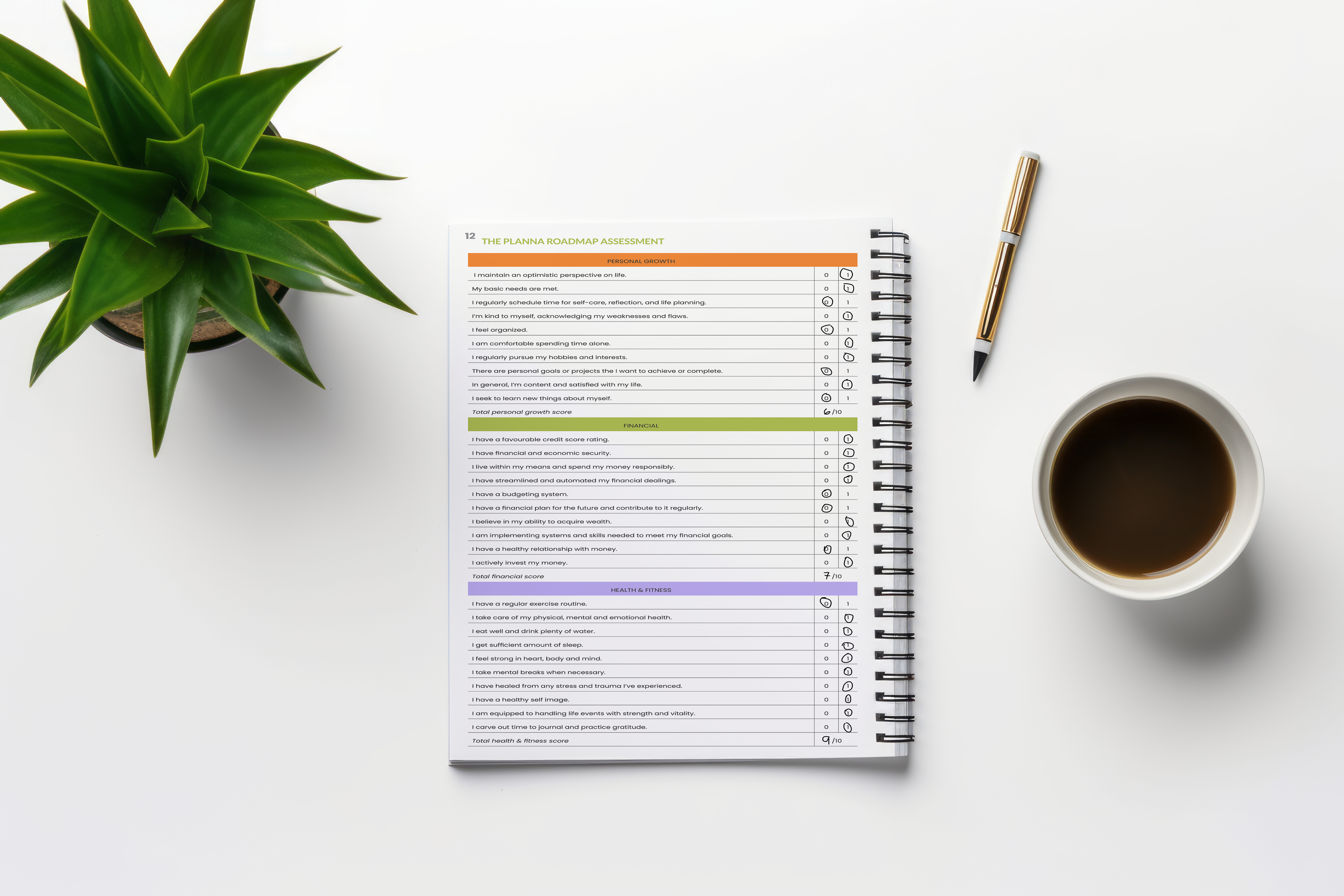 • Planna Roadmap Assessment – a self-evaluation tool that helps you score your current life areas and identify where to focus your goals for the upcoming year