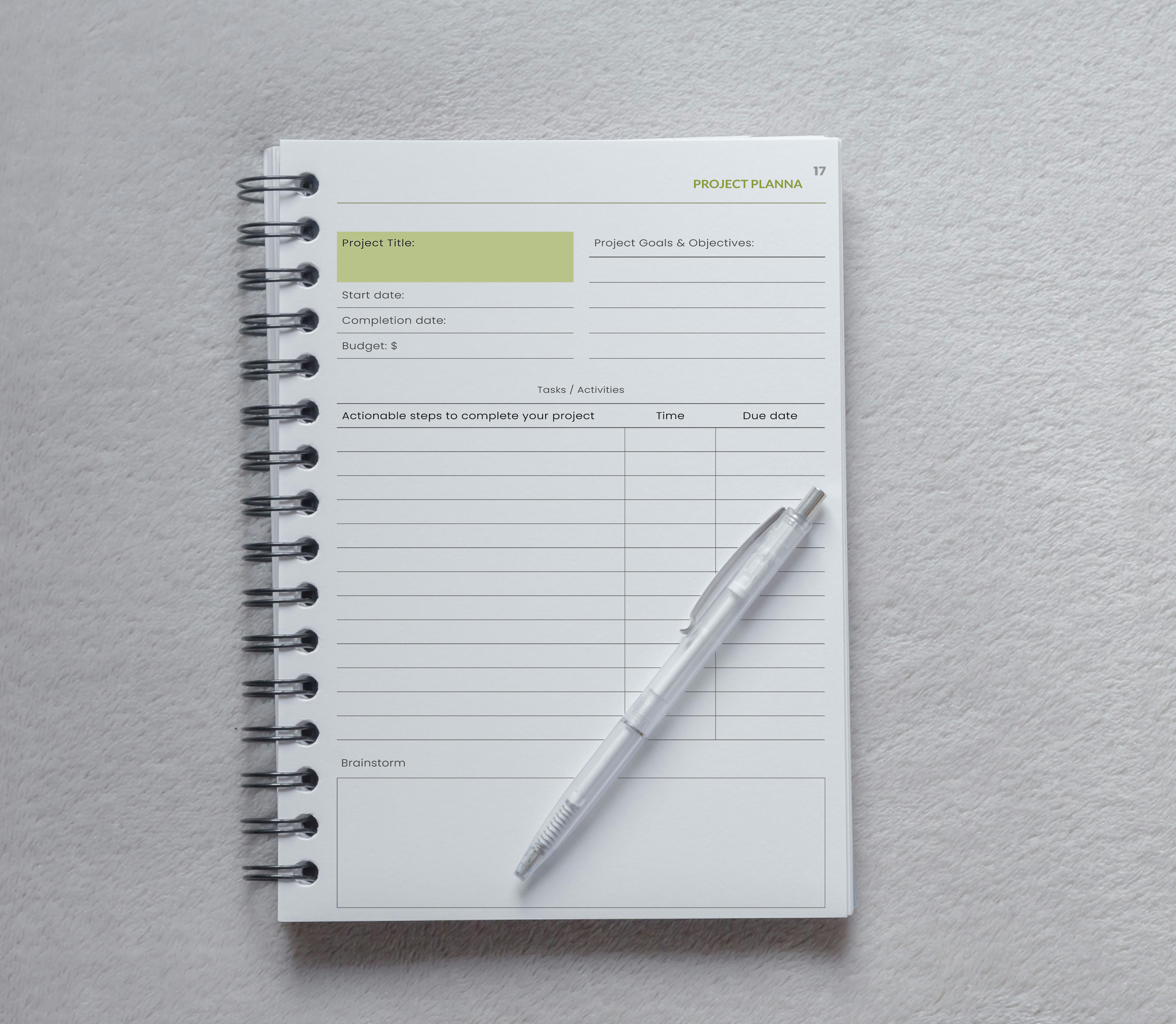 • Project Planning Section – four dedicated pages for outlining and tracking major projects throughout the year